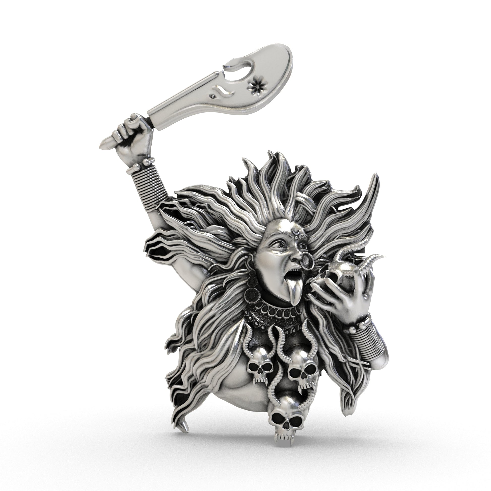925 Silver Kalimaa Face Pendant | Fierce Goddess Kali Ma Locket | Hindu Divine Jewelry for Protection & Strength